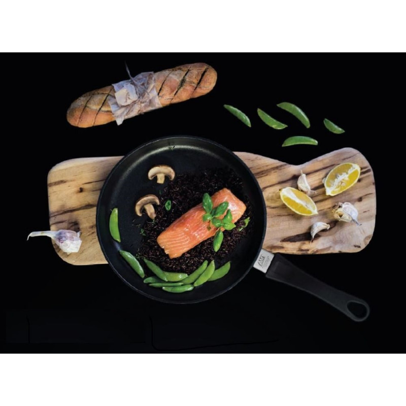 Käsitsi valatud alumiinium muudab pannipõhja deformeerumiskindlaks. Põhja paksus 8-10 mm tagab panni kiire ja ühtlase soojusjaotuse. 20% lühem küpsetusaeg säilitab rohkem naturaalseid mahlu, mineraale ning vitamiine. Lihtsalt puhastatav mittenakkuv 5-kihiline Lotan kate rasvavabaks toiduvalmistamiseks. Ergonoomiline käepide kannatab kuuma kuni 240 kraadini – seega sobib pann kasutamiseks ka praeahjus.