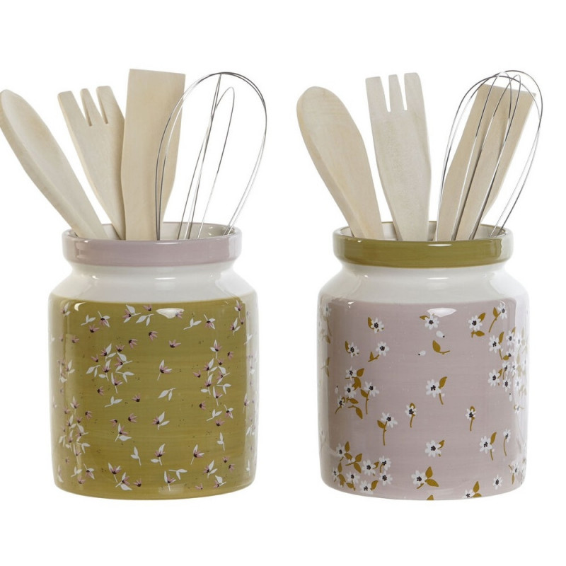 anum köögiriistade jaoks DKD Home Decor Metall Dolomite Puit MDF 12 x 12 x 25 cm (2 Ühikut)