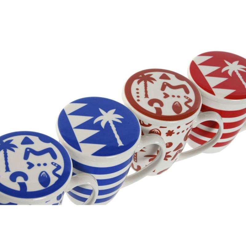Tass Teefiltriga Home ESPRIT Sinine Punane Roostevaba teras Portselan 380 ml (4 Ühikut)