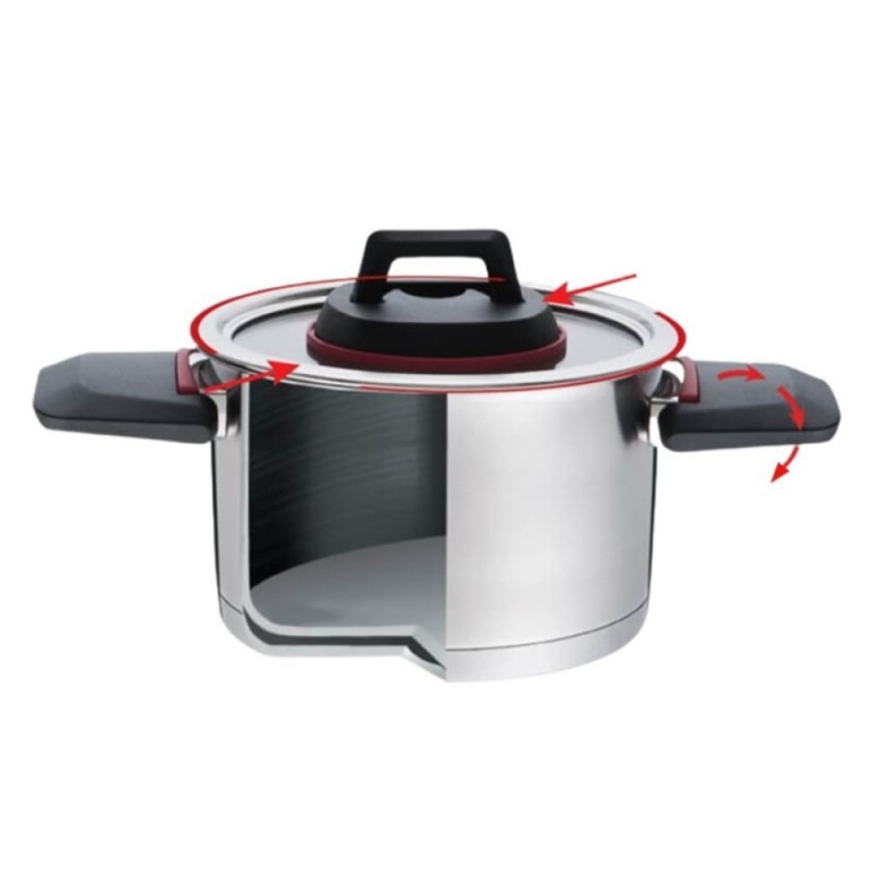Üks selle komplekti suurimaid eeliseid on kokkuklapitavad käepidemed. Tänu neile võtavad potid köögikapis palju vähem ruumi ja on lihtsamini hoiustatavad.