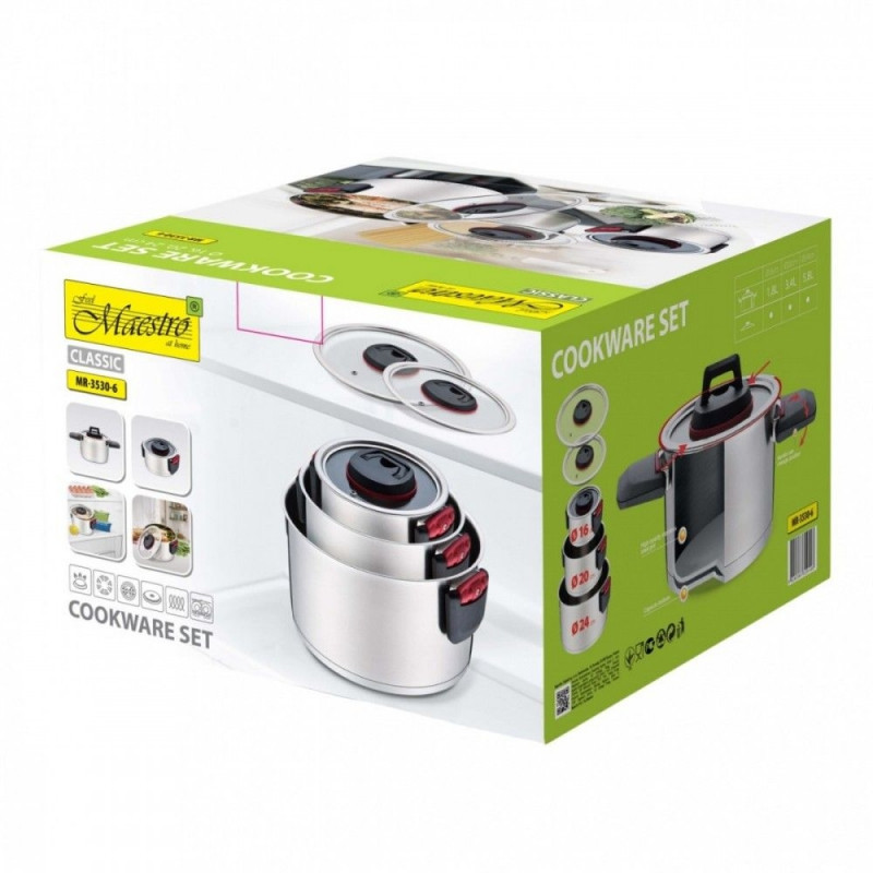 MAESTRO COOKWARE SET 6 pcs. 1,5l, 3,2l, 5,8l