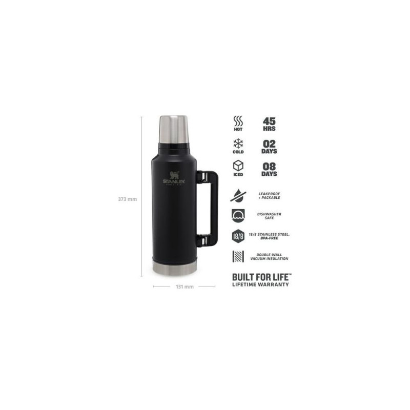 Keep the adventure going all day, all night, and straight into the next morning. This bottle can hold an entire pot of coffee—or whatever else you may be drinking—keeping it hot or cold for up to 45 hours. It’s also leakproof, packable and easy-to-pour which makes it a welcome companion at any tailgate or camp out.<br><br>We lead the industry, creating solutions that make life better. We continue to create legendary technology to serve the all-day food and beverage needs.<br><br>Our products do what we say they do or we replace them. We guarantee it.Stanley 10-07934-004. Capacity: 1.9 L, Product colour: Black, Housing material: Stainless steel. Width: 131 mm, Height: 373 mm, Weight: 1.13 kg