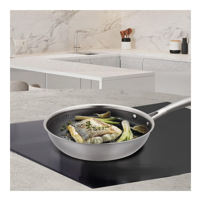 | Triple-layer body: inside 304 stainless steel with scratch- and burn-resistant coating, inside aluminium for better heat conduction, outside stainless steel with magnetic properties (induction) | Yes |