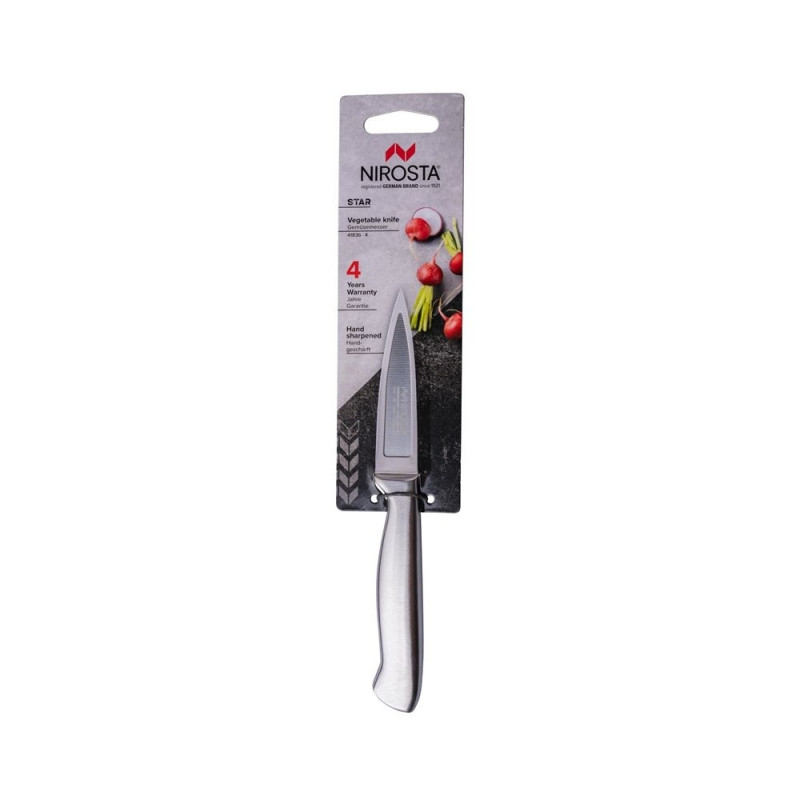 STAR sarja köögiviljanuga on valmistatud kvaliteetsest roostevabast terasest, mis tagab terale pikaajalise teravuse ja vastupidavuse. Teras on korrosioonikindel ning lihtne hooldada, mistõttu sobib see nuga nii kodukokkadele kui ka professionaalidele. Ergonomiline käepide tagab mugava ja kindla haarde, vähendades käe väsimust ka pikema lõikamise korral. Käepide on valmistatud vastupidavast sünteetilisest materjalist, mis on libisemiskindel ja hügieeniline.