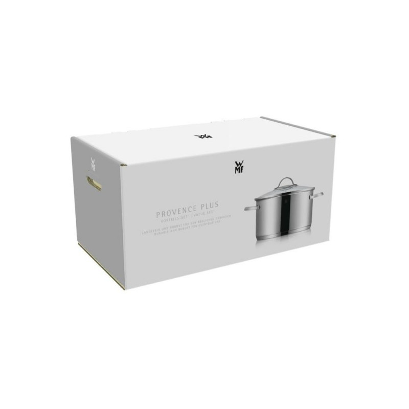 WMF Provence Plus 0721556380. Tüüp: Potikomplekt, toote värvus: roostevaba teras, materjal: roostevaba teras. Potiläbimõõt: 16 cm, teise poti läbimõõt: 20 cm, kolmanda poti läbimõõt: 24 cm. Pakendi maht: 49 376 cm³. Komplektis olevate toodete arv: 9 tk, pottide arv: 5 tk. Kogus ISO konteineris (20 jalga): 600 tk, kogus ISO konteineris (40 jalga): 1256 tk.