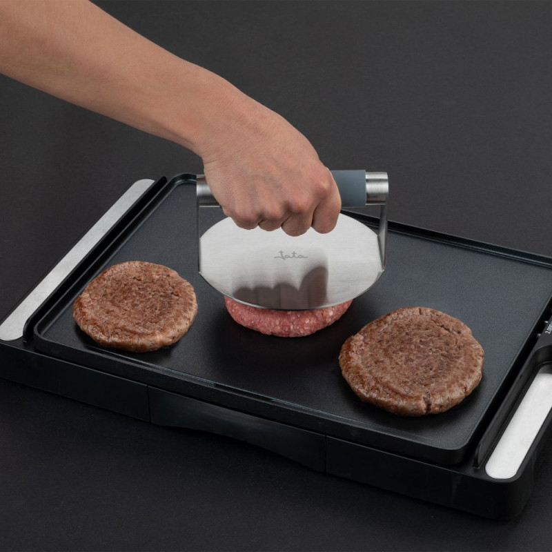 Valmistatud toidukvaliteediga roostevabast terasest ja silikoonist. Ühtlane jaotumine. Ergonoomiline disain. Lihtne puhastada. Kaal: 375 g. Mõõtmed: 14,5 x 14 x 7,5 cm