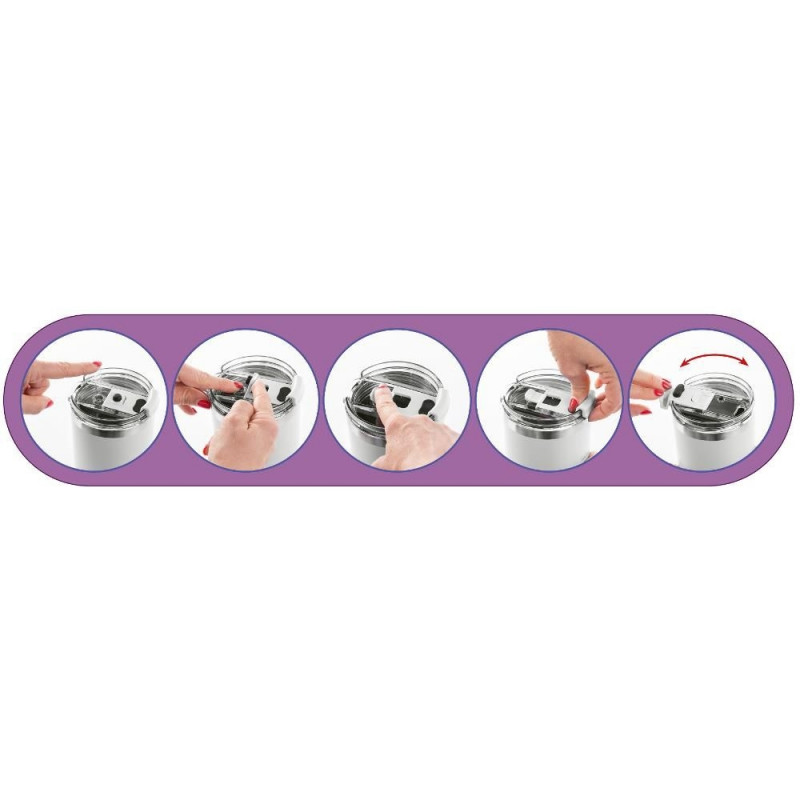 Kruusil on ergonoomiline käepide ja praktiline sisemine kõrs, mida saab hõlpsalt sisse tõmmata. Jooke saab tarbida kas kõrre kaudu või kaane suletava ava kaudu. Loodud kuumade või külmade jookide mugavaks transportimiseks. Roostevabast terasest sisu muudab termokruusi praktiliselt hävimatuks. Kõrs on mõeldud kasutamiseks ainult külmade jookidega.
