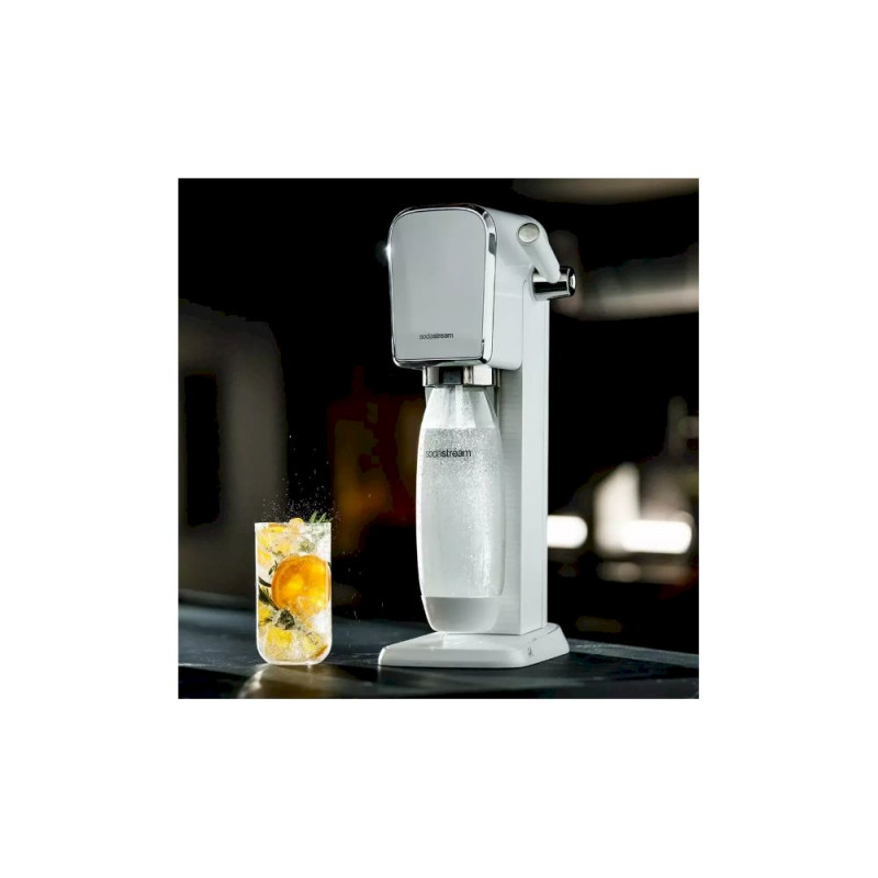 The SodaStream ART White Starter Kit brings refreshing homemade sparkling water to your home with effortless style. The white soda maker uses a manual push-button carbonation system, letting you choose your preferred level of fizz with ease. Included in the starter kit are a reusable 1 L carbonating bottle and a compatible CO₂ cylinder, giving you everything needed to begin carbonating straight away. The sleek, compact design fits neatly into any kitchen and helps reduce single-use plastic waste. Enjoy healthier sparkling beverages, infusions, and mixers with this practical and eco-friendly appliance.