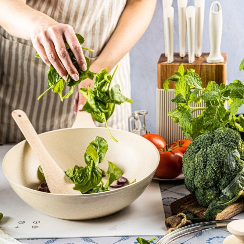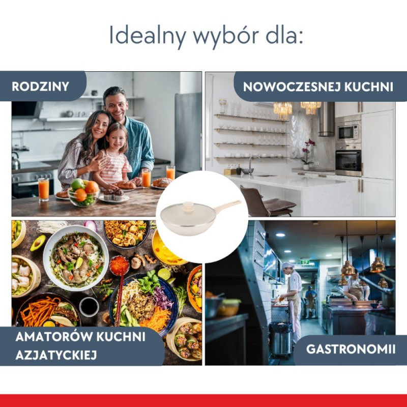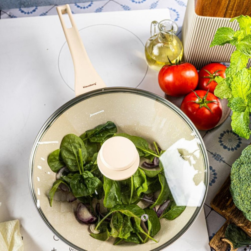 Klausberg KB-7991 on elegantne 28 cm läbimõõduga WOK-pann, mis on varustatud kaanega ja loodud mugavat ning tervislikku toiduvalmistamist silmas pidades. Kõrged ääred ja umbes 3,9-liitrine mahutavus võimaldavad sul vaevata valmistada terviklikke roogasid: stir-fry köögivilju, pastat, liha, suppe ja ka ühepajatoite kogu perele. Mitterakkuv marmorkate võimaldab vähendada rasva hulka ning karastatud klaasist kaas võimaldab hautamist ja temperatuuri hoidmist.