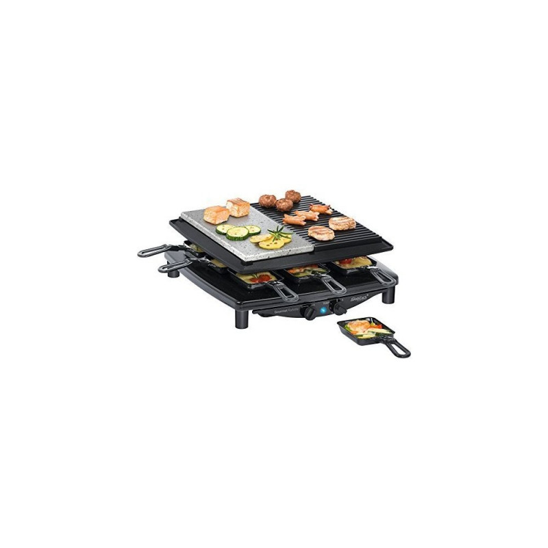 Steba Raclette RC 4 Plus - 1450W on võimas ja mitmekülgne raclette-grill, mis sobib suurepäraselt pidudeks ja koosviibimisteks kuni 8 inimesele. Sellel on suur, naturaalsest kivist valmistatud kuumutusplaat, mis jaotab soojust ühtlaselt ja tagab toidu ideaalse küpsetamise. Lisaks kuumutusplaadile on seadmel kaheksa väiksemat pannäkest, millel saab valmistada maitsvaid juustu- ja köögiviljaroogasid.