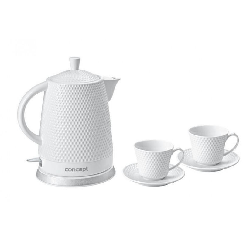Keraamiline elektriline veekeetja RK0040 kontseptsioon mahutavusega 1,5 liitrit koos kahe tassiga.