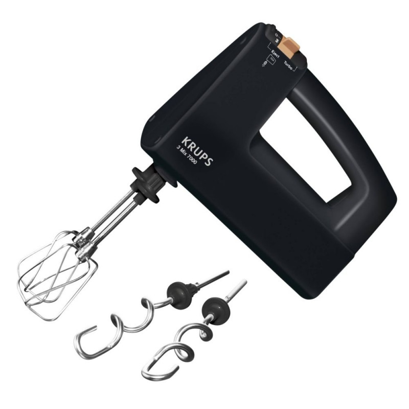 Krups 3 Mix 7000 käsimikser pakub jõudlust ja lihtsust igapäevasteks vajadusteks. Avasta see köögiseade eksklusiivse koti ja pikema kaabliga võrreldes standardmudeliga. Krups toob sulle täiuslikud tulemused sinu käeulatusse: täiuslikud munavalged rekordajaga tänu 500W mootorile ja kuni 1 kg leivatainale sõtkumine.