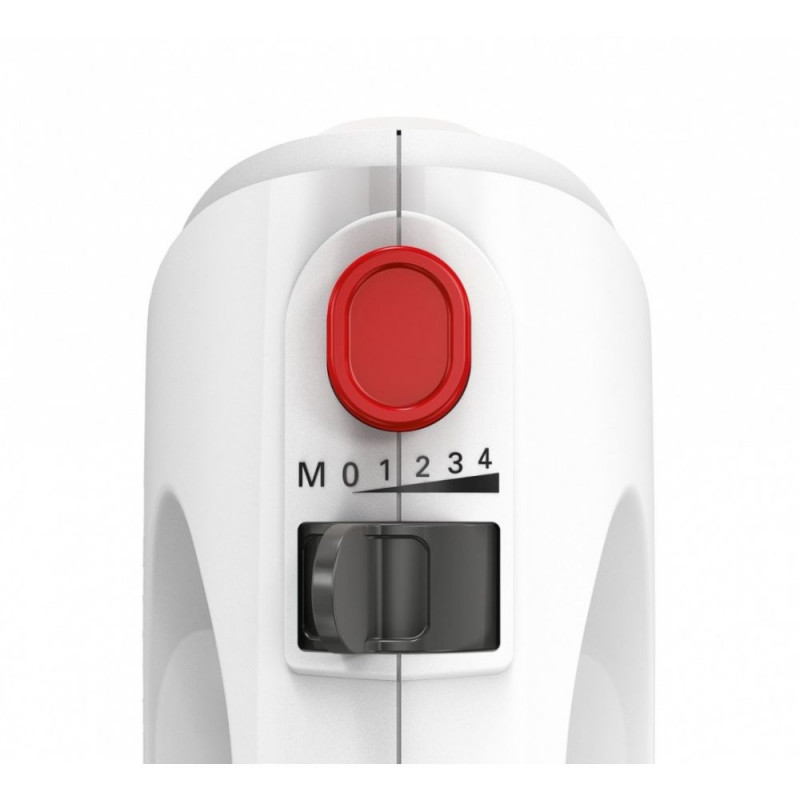 | Other features | All accessories - whisks and hooks - are dishwasher safe Separate handpiece release button Practical cable rewind All plastic components that come into contact with food are bisphenol-free. 2 whisks and mixing tips 2 stable kneading hooks |