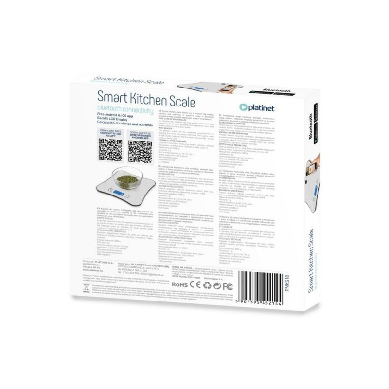 PLATINET NUTRITION KITCHEN SCALE STAINLESS STEEL NUTRIENT CALC APP BLUETOOTH [45214]