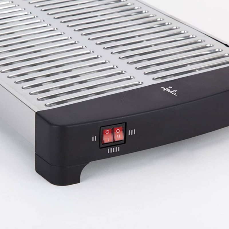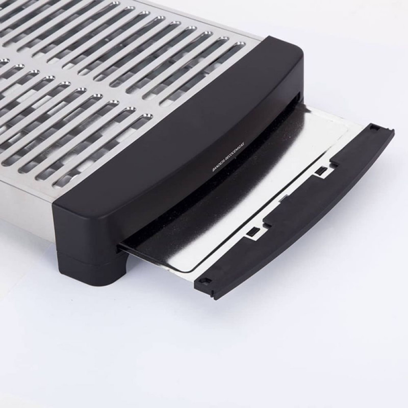 Suurepärane röstipind. Mõõdud 35 x 25 cm Homogeenne röstimine. 5 kvartsist toru. Roostevabast terasest korpus ja grill. 2 lülitit. 3 küttevõimsust: 400 W - 600 W - 1 000 W. Eemaldatav purusalv. Maitse ja lõhn värskelt küpsetatud leivast. Pinge 230 V. Võimsus 1.000 W. Toote mõõdud: 47,00 x 9,00 x 32,50 cm Toote kaal: 1,61 kg