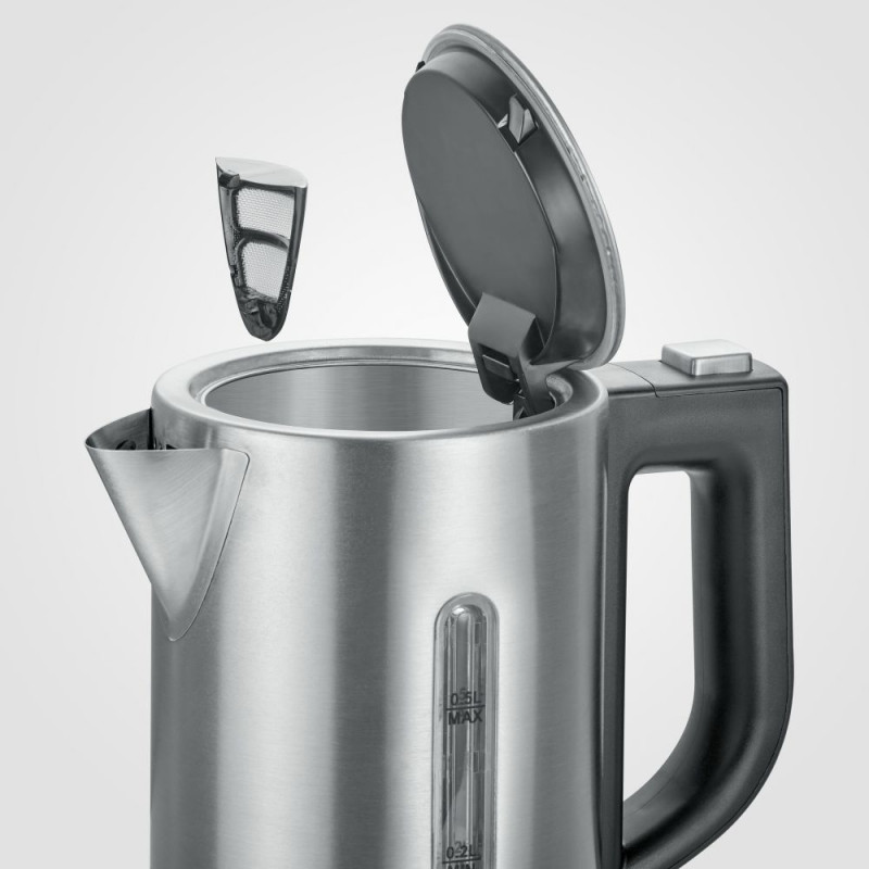 · Ideaalne telkimisretkedeks ja reisimiseks tänu 115/230-voldise lülitatavale pingele säästab hoiuruumi ja vähendab veetarbimist tänu 0,5-liitrisele mahule · Kaasaegne ja kõrgekvaliteediline roostevabast terasest disain koos veetaseme indikaatoriga sisaldab eemaldatavat ja pestavat lubifiltrit · 100% BPA-vaba tervislikuks ja turvaliseks naudinguks · Praktiline ühe käega juhtimine tänu meeldiva disainiga käepidemeleVÕIMSUS - 1100 vatti KAABLI PIKKUS - 700mm MÕÕTMED - 11,5 × 11,7 × 17,3 cm KAAL - 0,692 kg
