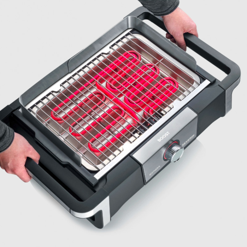 Severin PG 8113 SENOA BOOST· tänu SafeTouchi korpusele puudub põletusoht ühelgi pinnal · Kiire grilli käivitamine: 0 kuni 500°C kõigest 10 minutiga · Boost Zone – 500°C täiuslike söemärkide saavutamiseks. Täisvõimsus läbi topeltküttetehnoloogia · Kasutamine sise- ja välistingimustes · kvaliteetne roostevabast terasest grill · Spetsiaalselt välja töötatud reflektorkest optimaalseks soojusjaotuseks · Sisseehitatud turvalülitiga toitekarp · paljud eemaldatavad osad võimaldavad hõlpsat puhastamist: tuulekaitse, grillrest, toitekast ja küttekeha, helkuralus · Suure pöördnupu ja selge skaleerimisega termostaat parema kasutatavuse tagamiseksKaal: 4,233 kg Mõõdud: 41 × 62 × 16,5 cm Kuumutamisaeg: 10 minutit Reguleeritav termostaat: 1 Reguleeritava kõrgusega võre: 1 Ohutusmikrolüliti: 1 Lauaplaadi grillfunktsioon: 1 Grillipinna tüüp: grillrest Grilli termomeeter: 1 Grillimise termomeetri temperatuurivahemik: 10 - 300 °C Boost Zone: 1