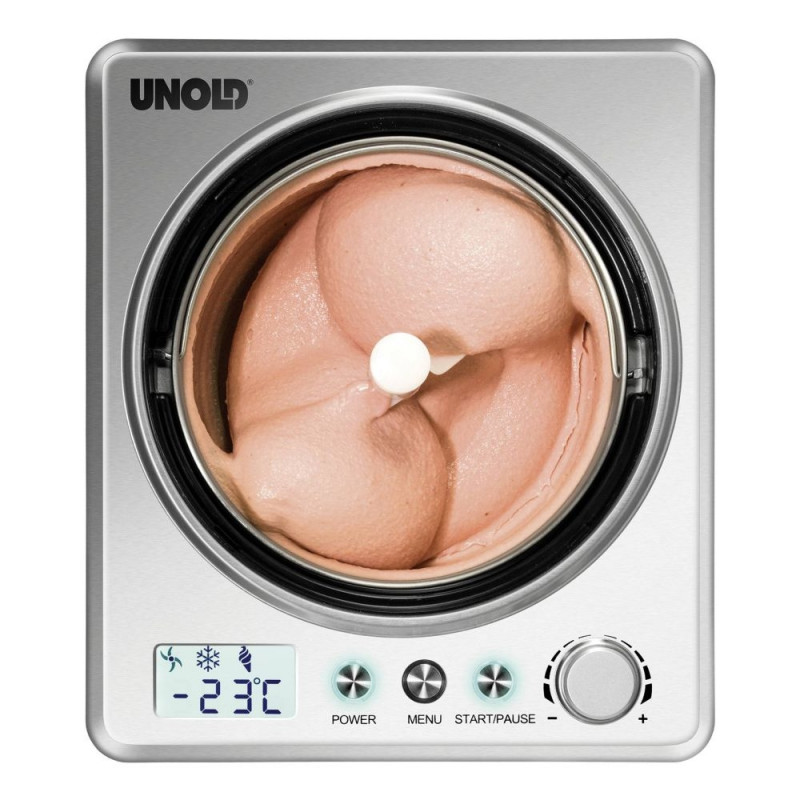 Tänu võimsale kompressorile ei vaja Unold 48872 eelnevat jahutamist sügavkülmas – lihtsalt lisa koostisosad, vali soovitud programm ning masin teeb ülejäänu ise ära. Jäätisemasinal on selge ja intuitiivne LCD-ekraan, millelt saad jälgida valmistamise aega ning temperatuuri. Masina mahukas, 1,5-liitrine eemaldatav roostevabast terasest anum võimaldab valmistada korraga suure koguse jäätist, mis sobib ideaalselt nii väiksemateks kui ka suuremateks seltskondadeks.