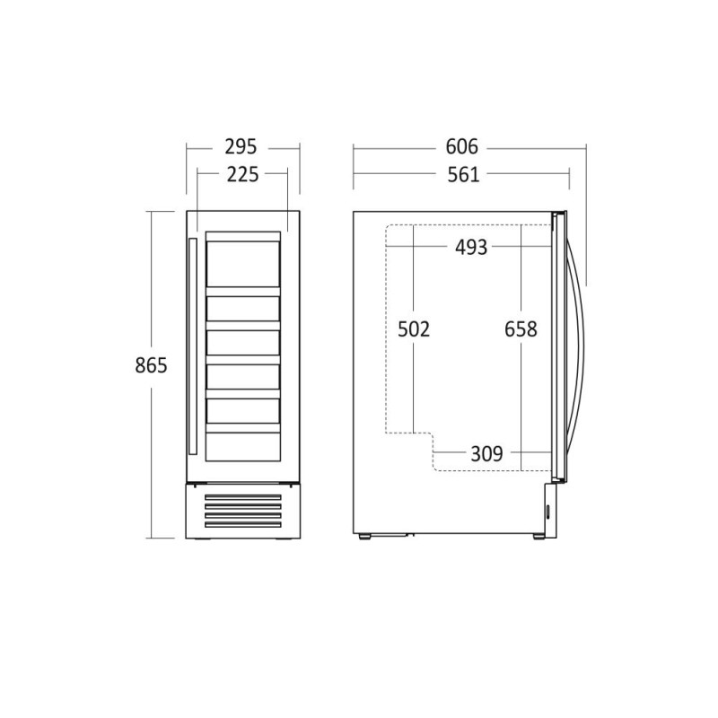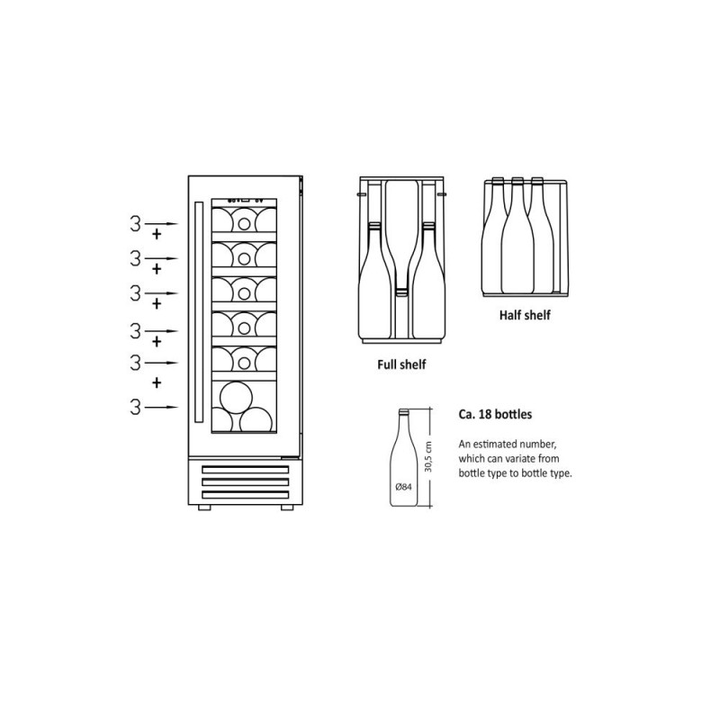 Stiilne 30 cm laiune tööpinna alune veinikülmik Scandomestic.
