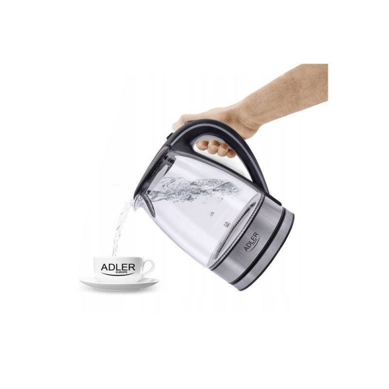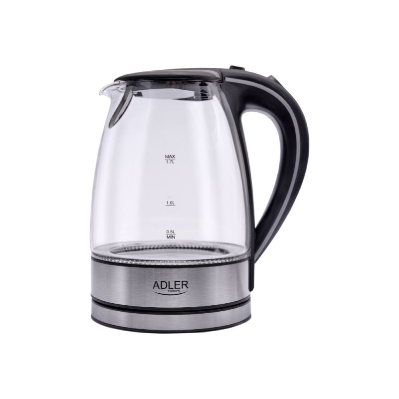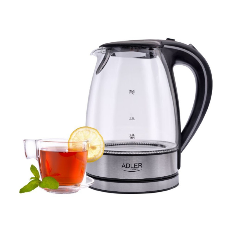 Adler | Kettle | AD 1225 | Standard | 2000 W | 1.7 L | Glass | 360° rotational base | Transparent/Stainless steel