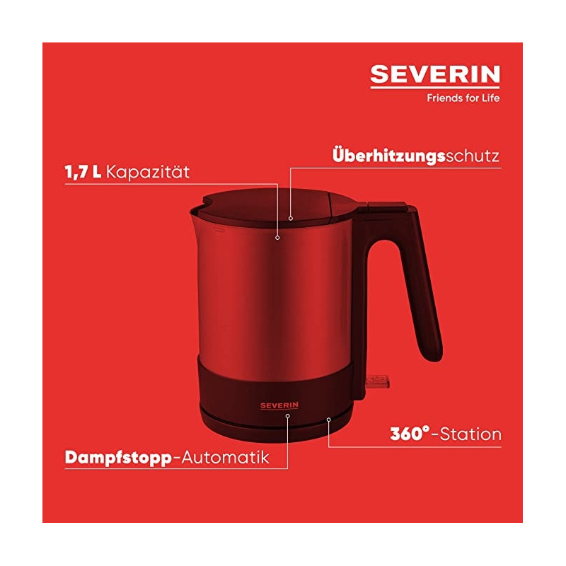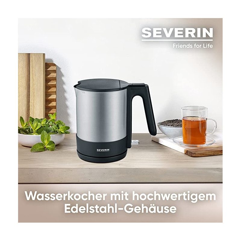 Severin WK 3409, kettle (stainless steel (brushed) / black, 1.7 liters)
