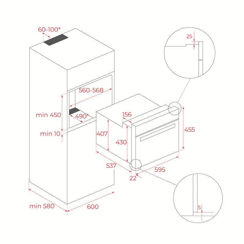 Triple glazed door - 3 kordse klaasiga uks tagab maksimaalse ohutuse, ahju välisklaas jääb jahedaks ka kõige kõrgemate küpsetustemperatuuride juures.