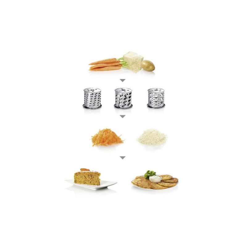 - Mitmekülgne abivahend igapäevaelus üle 20 funktsiooni alates liha ja kala hakkimisest, köögiviljade riivimisest, juustu riivimisest kuni puuviljade ja köögiviljade pressimiseni