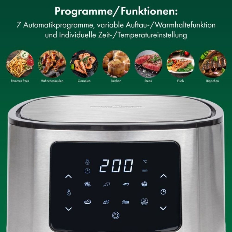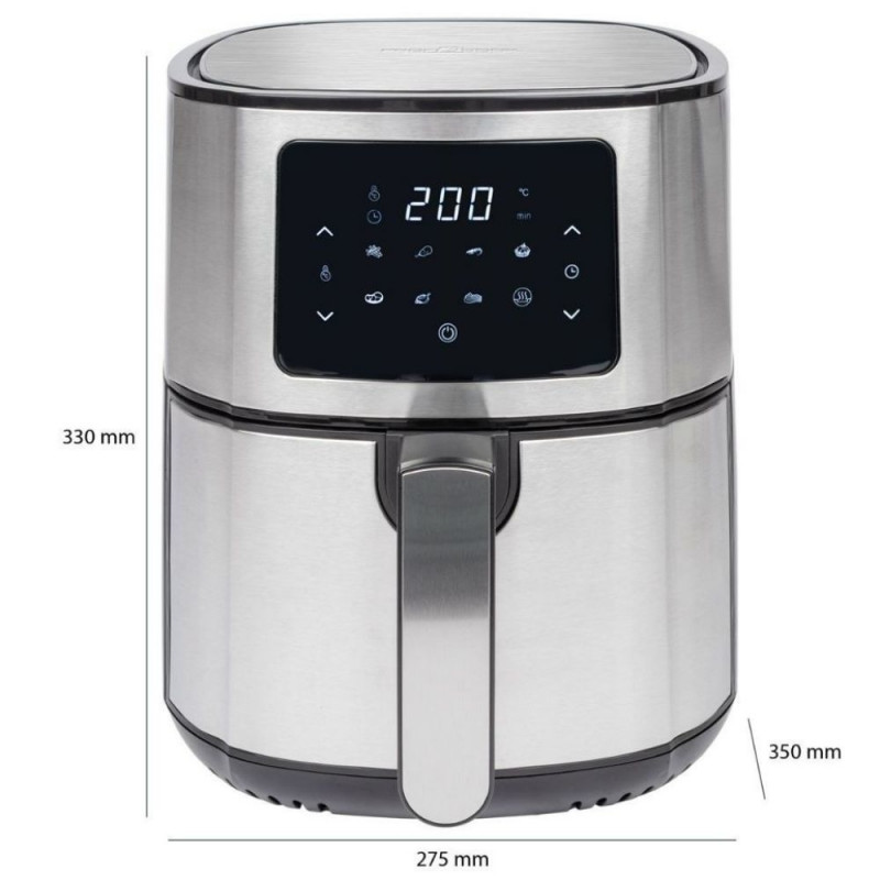 Suure mahutavusega 5,5 liitrine Proficook kuumaõhufritüür võimaldab valmistada kõike alates friikartulitest kuni suurte paneeritud krevettideni.