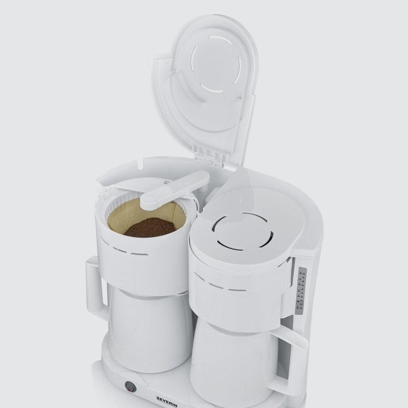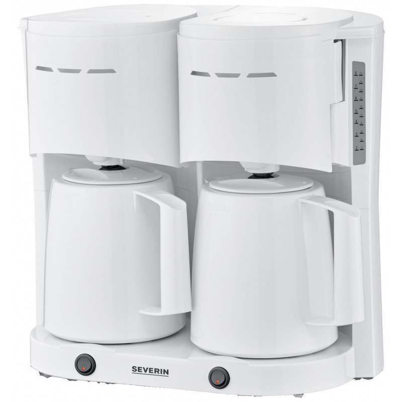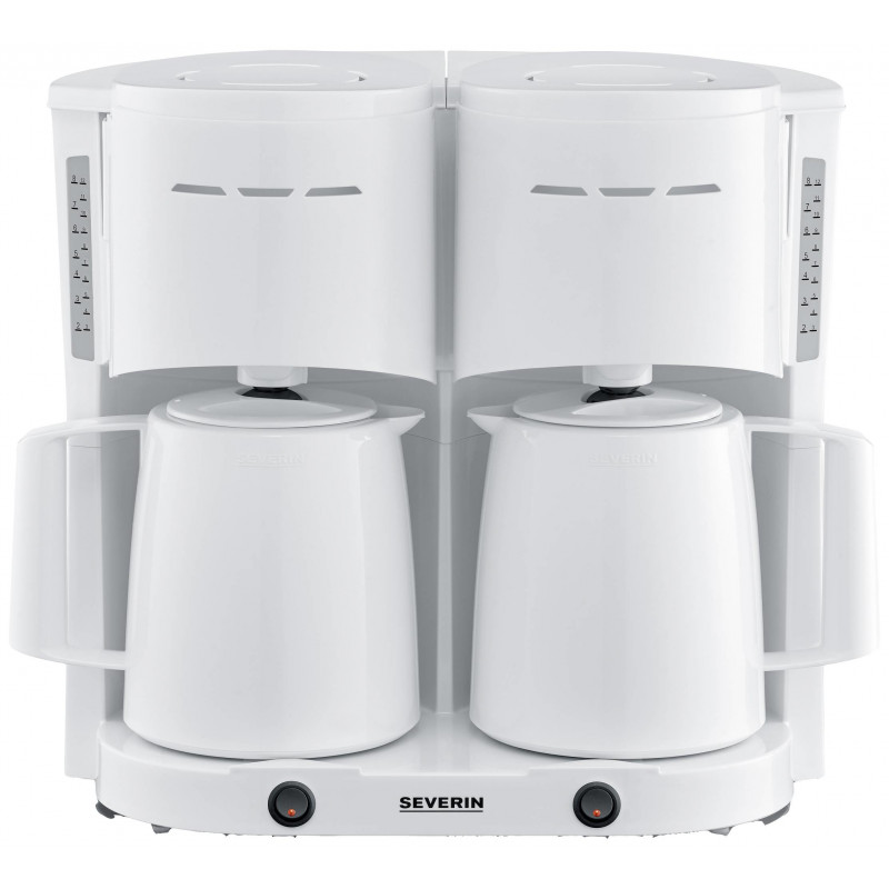 Kahekordne kohvinauding samal ajal Kahe 8 tassiga kohvi üheaegne valmistamine – ideaalne kontorisse, külalistemajadesse või restoranidesse Kaks praktilise läbitõmbekaanega termokannu tagavad kauakestva kuuma kohvinaudingu Kaks veetaseme indikaatorit esiküljel võimaldavad mugavat kasutamist ja parima ülevaate Integreeritud kaablisahtel kaabli lihtsaks hoiustamiseksTehnilised andmed Võimsus: 2 x 1000 vatti Mahutavus: 2 x kuni 8 tassi Värv/materjal: valge Eriomadused: 2 läbitõmmatava kaanega termokannu pikaajaliseks temperatuuri säilitamiseks 2 pöörlevat filtrit 1 x 4 tilkumiskorgiga 2 märgutuledega sisse/välja nuppu Kaabli pikkus: 70 cm Automaatne väljalülitus: jah Mõõdud: 39,5 x 25,5 x 36,6 cm Kaal: 4,4 kg