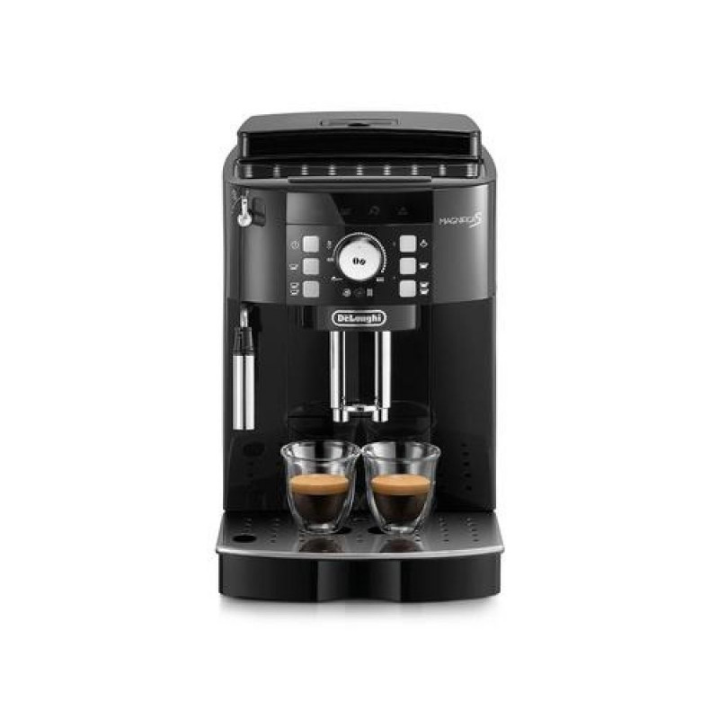 Compact bean-to-cup machine, press a button and rotate the knob to customize your favorite coffee. Equipped with a manual cappuccino device ideal to produce a rich froth for your cappuccino, cup holder and water filter.De’Longhi Magnifica S ECAM 21.117.B. Product type: Combi coffee maker, Coffee maker type: Semi-auto, Water tank capacity: 1.8 L, Coffee input type: Coffee beans, Ground coffee, Reservoir for brewed coffee: Cup, Capacity in cups: 2 cups, Built-in grinder. Power: 1450 W. Product colour: Black