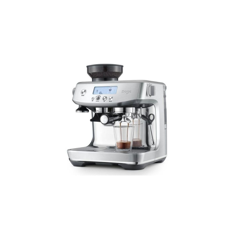 <b>3 seconds start up with ThermoJet heating system.</b><br><br>Barista-quality performance with a new intuitive interface that provides all the information you need to create café quality coffee at home. The built-in grinder delivers the right amount of ground coffee on demand, for full flavour. With a 3 second heat up time and precise espresso extraction, you go from bean to cup, faster than ever before.<br><br><b>Intuitive Interface</b><br><br>LCD display with grinding and extracting progress animations. The screen provides you all the precise information you need to make coffee exactly the way you like it, every time.<br><br><b>Faster Heat Up Time</b><br><br>Innovative ThermoJet heating system achieves the optimum extraction temperature in 3 seconds with instantaneous transition from espresso to steam. Ready to make your best coffee without the wait.Sage the Barista Pro. Product type: Espresso machine, Coffee maker type: Fully-auto, Water tank capacity: 2 L, Coffee input type: Coffee beans, Reservoir for brewed coffee: Cup, Capacity in cups: 2 cups, Number of spouts: 1, Built-in grinder. Display type: LCD. Power: 1650 W. Product colour: Stainless steel