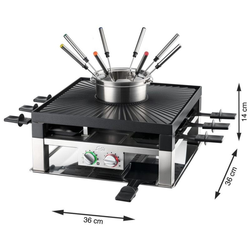Praktiline 3-ühes lauagrill koos raclette, grilli ja fondüü funktsioonidega ühes seadmes.