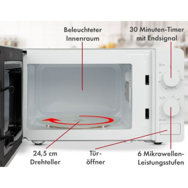 700-vatise mikrolaineahju võimsuse ja avara 20-liitrise küpsetusruumiga pakub see seade toidu ettevalmistamises ideaalset kiiruse ja võimsuse kombinatsiooni.