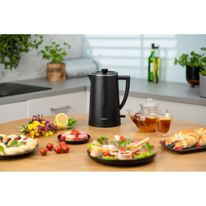 Võimsus: 1500W Mahutavus: 1,7 l Korpuse materjal: Roostevaba teras – sees; Kvaliteetne plastik – väljast Veetaseme indikaator: Jah Settefilter: jah Ohutussüsteemid: Automaatne väljalülitus, kui vesi keeb, Automaatne väljalülitus aluselt eemaldamisel, Sisselülituskaitse ilma veeta Värv: must Lisafunktsioonid: Pöörlev alus, Lame/peidetud küttekeha, Kaablihoidla Kontrolleri tüüp: Strix