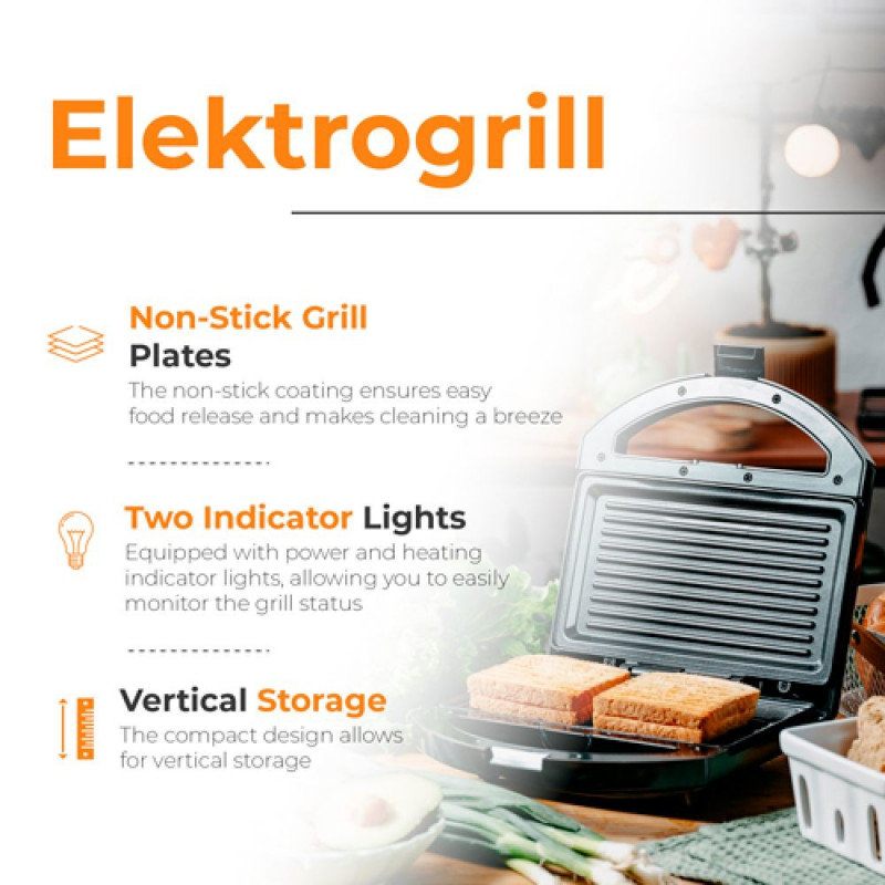 Adler AD 3068 Elektrigrill - mitmekülgne ja mugav seade, mis sobib ideaalselt maitsvate roogade grillimiseks otse sinu köögis. Funktsionaalsust ja kasutusmugavust silmas pidades loodud elektrigrill võimaldab sul nautida oma lemmikgrillroogasid aastaringselt. Adler AD 3068 Elektrigrill on ideaalne lahendus kõigile, kes armastavad grillitud toite, kuid hindavad kodus kokkamise mugavust. Mittekleepuvad plaadid ja mittekuumenev käepide muudavad grilli kasutamise lihtsaks ja ohutuks, kompaktne disain ja võimalus hoida seda vertikaalasendis aitavad säästa köögis ruumi.