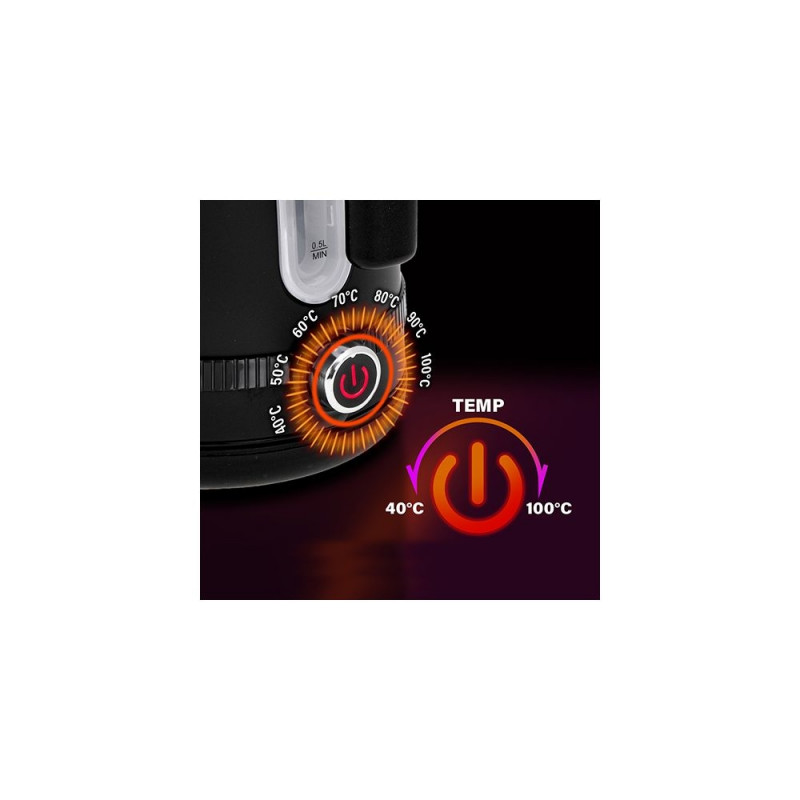 Innovaatiline veekeetja LCD-temperatuurinäidikuga, 7-astmelise temperatuuri reguleerimise ja temperatuuri hoidmise funktsiooniga. Vee keetmise režiimis ühele võimalikest temperatuuridest vahemikus 40°C kuni 100°C näitab LCD-ekraan vee hetketemperatuuri, kuni see saavutab soovitud väärtuse. Temperatuuri hoidmise režiimis näitab LCD-ekraan pidevalt seatud temperatuuri taset, mida seade hoiab, soojendades vett tsükliliselt 2 tunni jooksul. Lihtne kasutada, iga kord, kui veekeetja aluselt tõstetakse, lähtestatakse eelmised seaded. Heli signaal käivitamisel ja vee keemaminekul tuletab meelde lemmikjoogi vee lisamist. Võimalus keeta vett kuni 100°C ja seejärel seadistada temperatuuri hoidmise funktsioon 40°C-le, mis hõlbustab piimasegude kiiret valmistamist väikelastele. Ideaalne lahendus emadele, kes toidavad lapsi ka öösel.