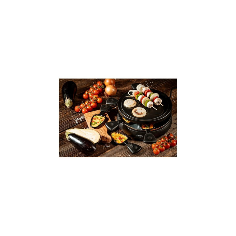 Kaasaegne Raclette grill CR 6606 võimsusega 1200 W sobib suurepäraselt, kui soovid valmistada kuumi suupisteid mitmele inimesele. Sellel saab samaaegselt grillida kaelakarbonaadi ja valmistada juustuga küpsetatud suupisteid.