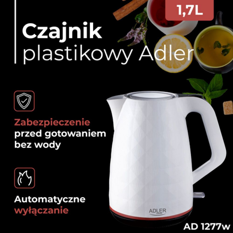 AD 1277 valge plastikust veekeetja 1,7 l