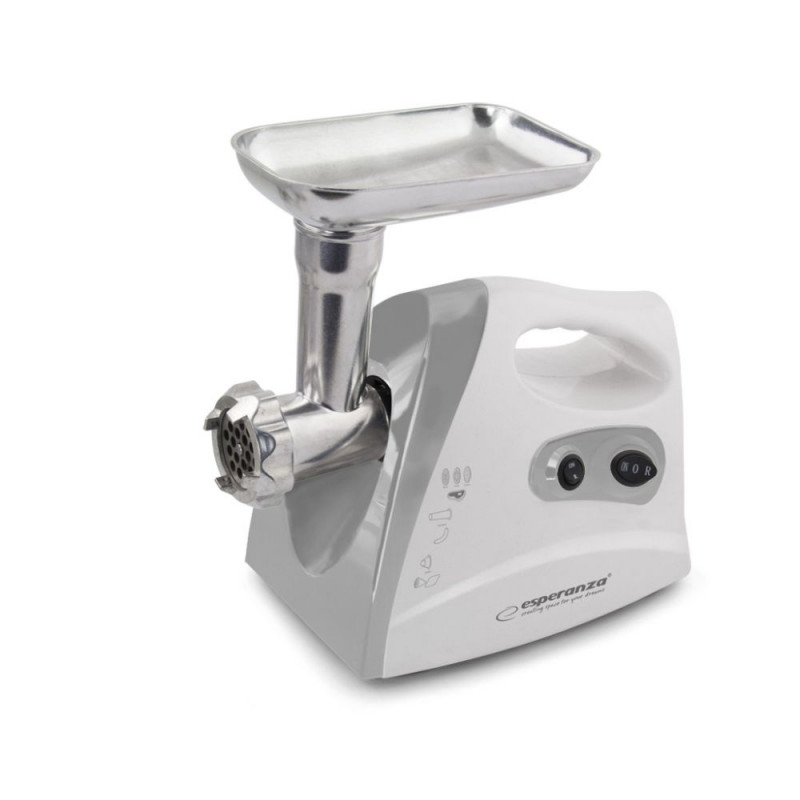 Esperanza MEATBALL hakklihamasin on kaasaegne ja funktsionaalne seade, mis peaks kuuluma iga köögi varustusse. Tänu kolmele erineva avade läbimõõduga sõelale (2,7 mm, 4,0 mm, 8,0 mm) saad hakkida mitte ainult liha, vaid ka teisi toiduaineid. Komplektis on ka lisatarvikud vorstide ning "kebbe" valmistamiseks. Libisemiskindlad kummijalad tagavad seadme stabiilse ja ohutu töö.