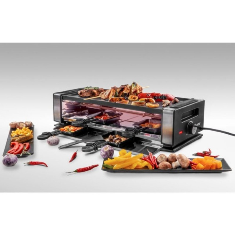 Unold RACLETTE Délice Basic. Inimeste arv: 8 inimest, korpuse materjal: plast, roostevaba teras, pliidiplaatide/keedualade arv: 1 ala. Võimsus: 1200 W, vahelduvvoolu sisendpinge: 220–240 V, vahelduvvoolu sisendsagedus: 50/60 Hz. Laius: 490 mm, sügavus: 204 mm, kõrgus: 126 mm. Pakendi laius: 525 mm, pakendi sügavus: 210 mm, pakendi kõrgus: 247 mm. Pannide arv: 8 tükki, kasutusjuhendi keeled: saksa, hollandi, inglise, hispaania, prantsuse, itaalia, poola.