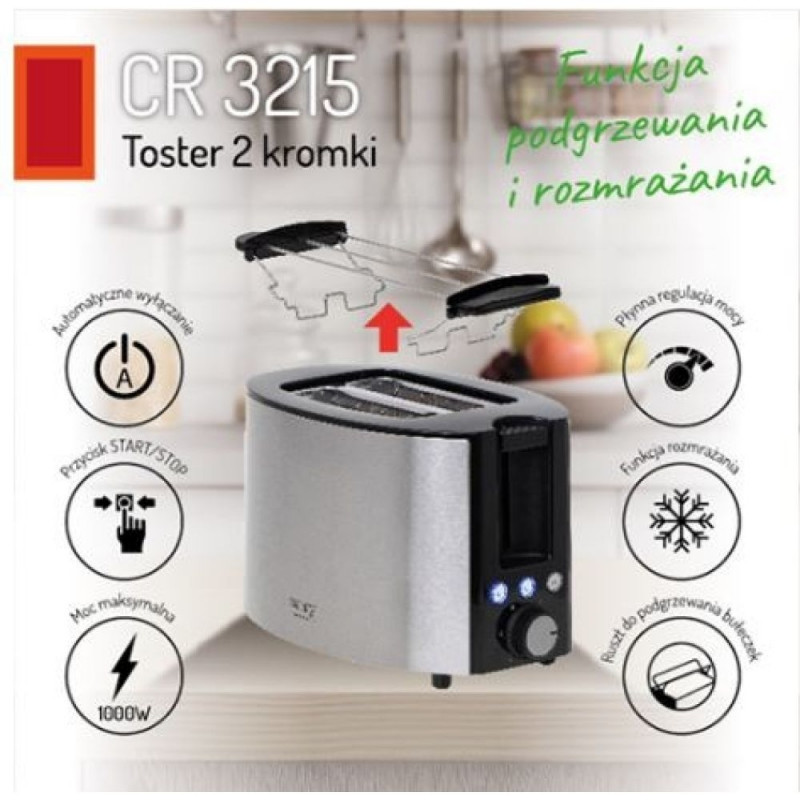 Kas alustad tavaliselt oma päeva sooja hommikusöögiga? Kas sulle meeldib õhtusöögiks küpsetatud röstsai? Otsid maitsvat ja krõmpsuvat lisandit oma lemmiksalatile? Või soovid vaheldust igapäevastele saiakestele? Meil on midagi just sulle! CR 3215 röster on mõeldud kõigile, kes hindavad hommikusöögiks moosiga röstsaia või sooje kukleid! Stiilne seade, mis avaldab muljet nii oma funktsionaalsuse kui ka välimusega, sobib igasse kööki! Vaid mõne minutiga saad rõõmustada oma peret sooja leiva lõhnaga, mis rikastab iga toidukorda! Rösteri kõrge kvaliteet tagab, et saad seda nautida veel aastaid! Parim krõbe röstsai!