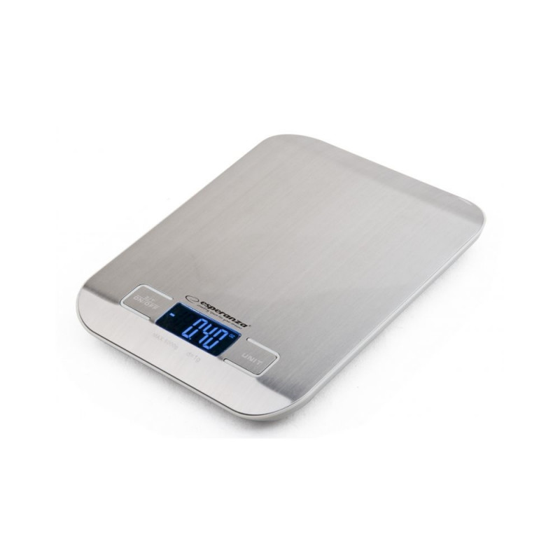 Väga täpne, õhuke disain, metallikläikega pind ja sinise taustvalgustusega ekraan. Sobib kõigi kuivade ja vedelate koostisosade ning toitude kaalumiseks.