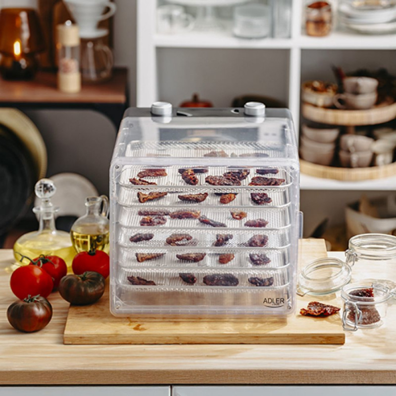 Suszarka Adler AD 6660 on ideaalne lahendus neile, kes soovivad valmistada kodus kuivatatud puuvilju, köögivilju, seeni ja teisi toiduaineid. Tänu kuuele automaatsele programmile ning laiale aja ja temperatuuri reguleerimise võimalustele muutub kuivatamisprotsess lihtsaks ja täpseks. Seadme kokkupandav konstruktsioon tagab lihtsa hoiustamise ning kvaliteetsed materjalid garanteerivad pikaajalise vastupidavuse.