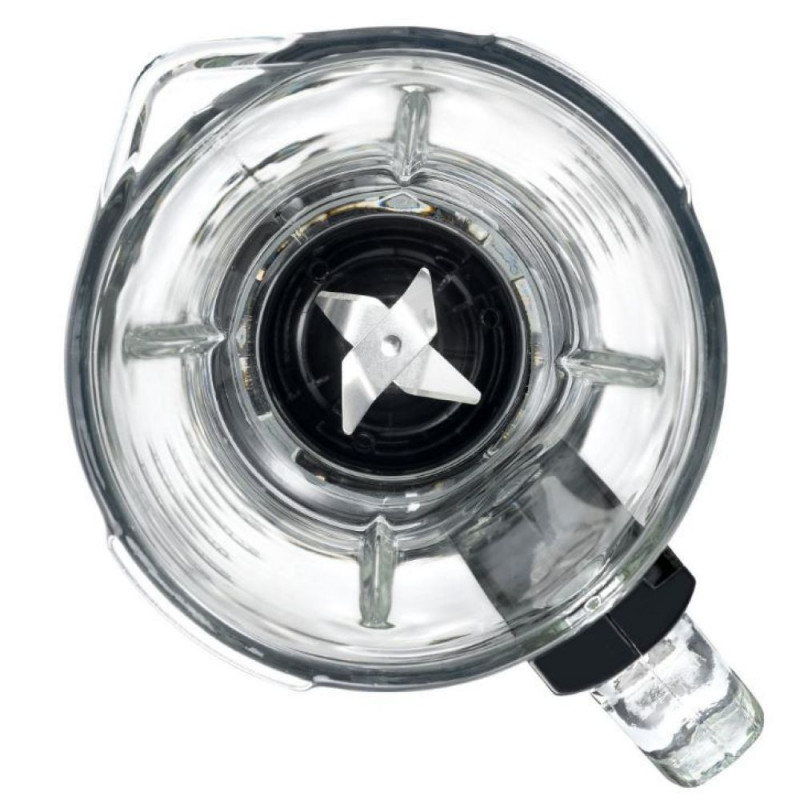 Karastatud klaasist klaaskann mahuga 1,5 liitrit on ideaalne väikeste ja suurte portsjonite jaoks. Kiireks ja tõhusaks puhastamiseks lisage 500 ml vett ja paar tilka pesuainet. Seejärel seadke blender madalaimale kiirusele ja laske sellel 30 sekundit töötada.