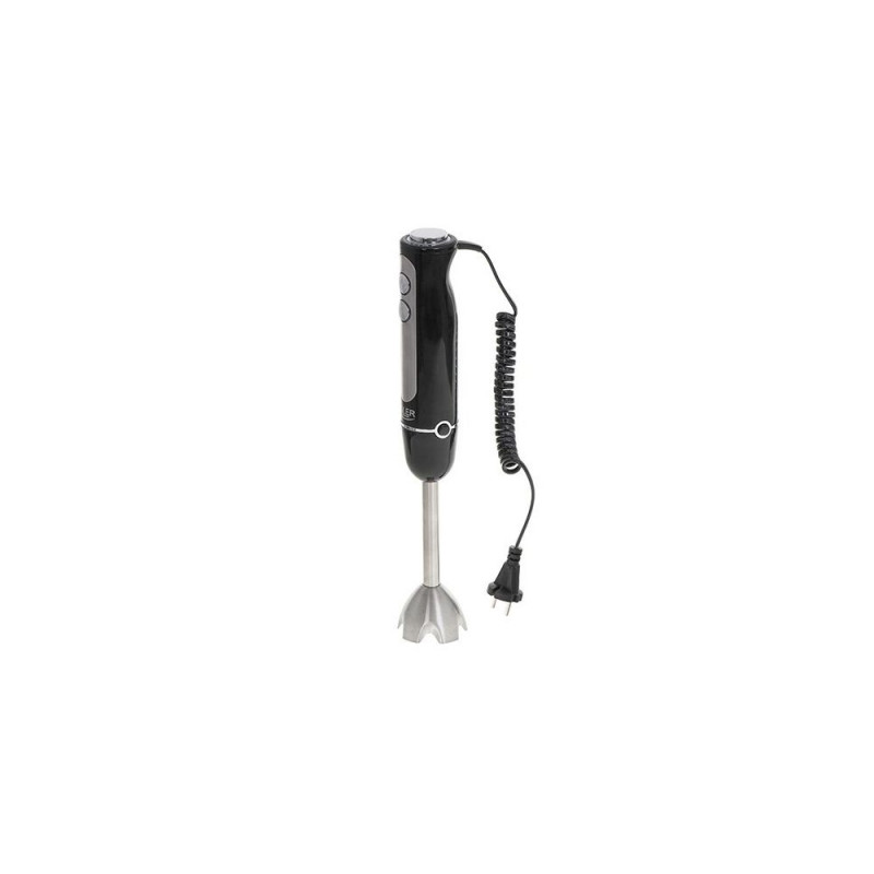 Käsimikseril on roostevabast terasest tera ja stiilne must disain.