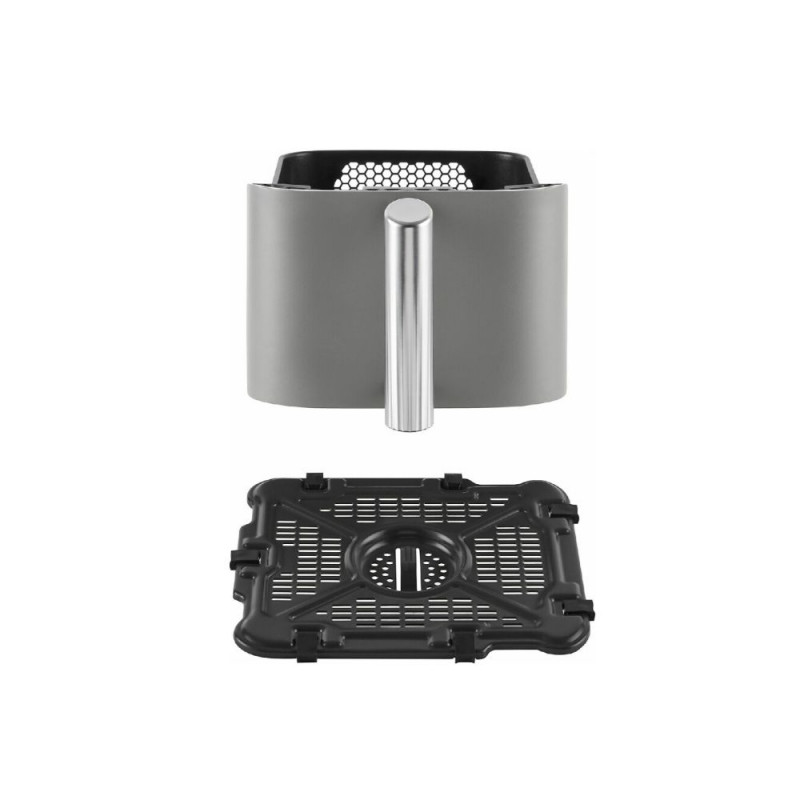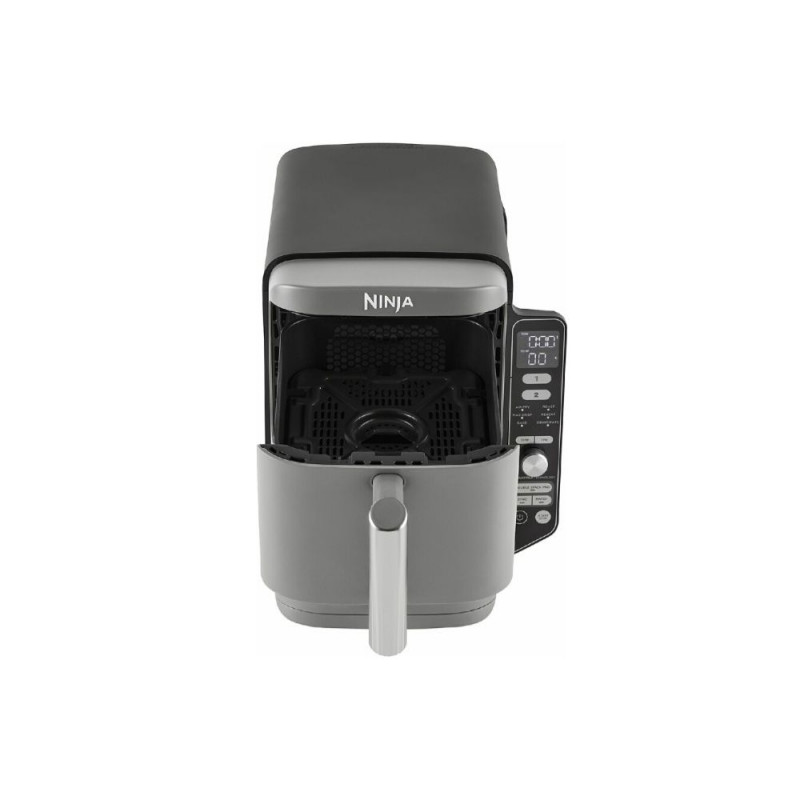 With a height of 38.5 cm , it takes up less space on the countertop than horizontal 2-compartment air fryers.