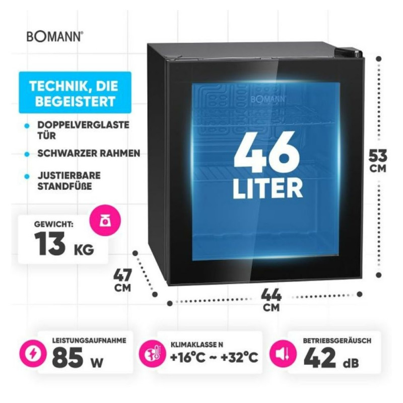 Klaasuksega minikülmik Bomann® KSG7291 on ideaalne ruumisäästja igas majapidamises.