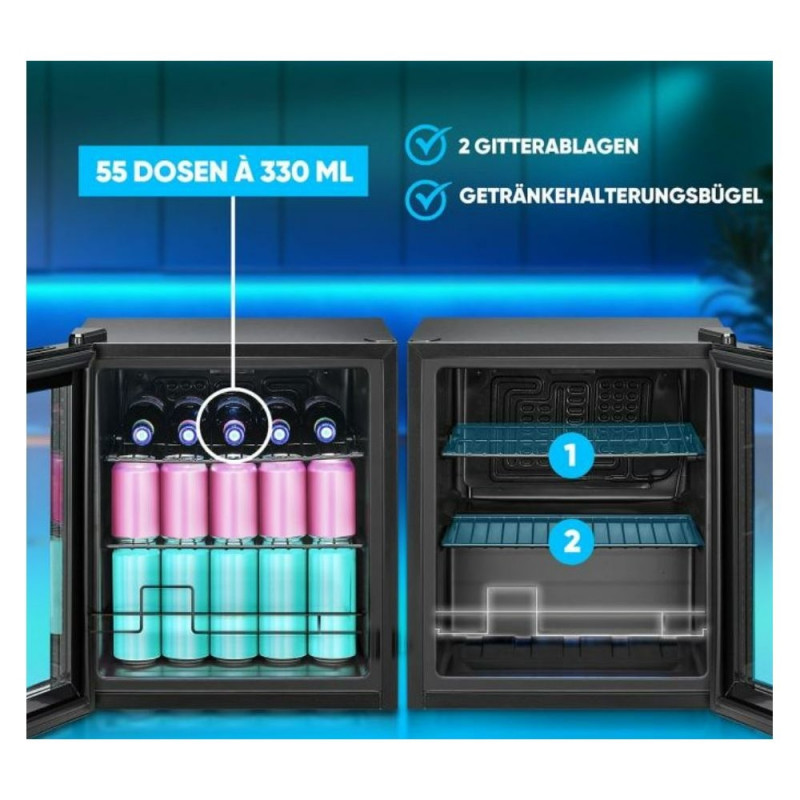 Kahe võreriiuliga mahutab see kokku 55 purki mahuga 330 ml, mistõttu on see ideaalne jookide ja suupistete jaoks.