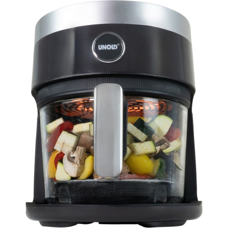 Kuumaõhufritüür töötab kiirelt ringleva kuuma õhu abil, mis küpsetab toidu ühtlaselt igast küljest. Tänu läbipaistvale klaasanumale saad kogu küpsetusprotsessi jälgida ilma kaant avamata, mis aitab vältida liigset kuivatamist või kõrvetamist. Klaasist anum on lõhna- ja maitsekindel ning seda on lihtne puhastada – sobib ideaalselt igapäevaseks kasutamiseks.