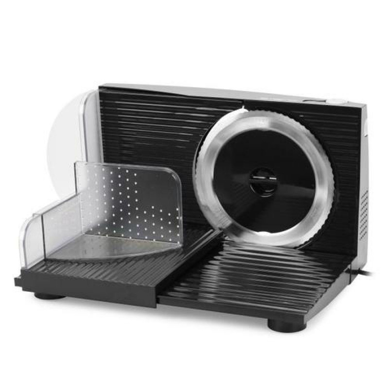 Stainless steel blades<br>Detachable blades<br>Thickness adjustment 0-17mm<br>Safety on/off switch<br>Food pusher with safety thumb-guard<br>Anti-slip feet<br>Foldable<br>Diameter 165mm<br>Power cord stOsta kohe, viimased eksemplarid laos!